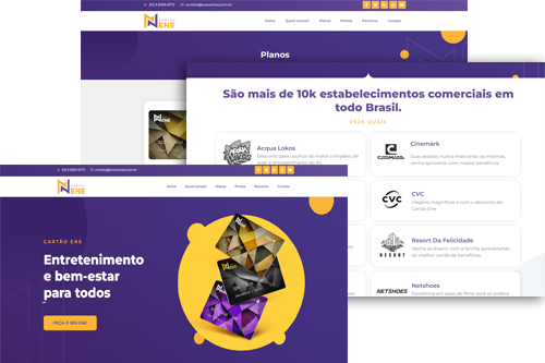 O design foi pensado para ser simples e direto, com informações claras sobre como o cartão funciona e as vantagens que ele oferece. A navegação é fácil, permitindo que o usuário saiba rapidamente onde pode usar o cartão e quais descontos estão disponíveis. A plataforma foi otimizada para destacar a proposta de valor do ENE: sem burocracia, sem perda de tempo, e com uma experiência de compra ágil. O site também é responsivo, garantindo que o acesso seja eficiente tanto em desktop quanto em dispositivos móveis, para que os usuários possam tirar proveito das vantagens do cartão onde quer que estejam.