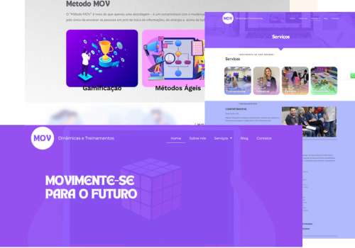 O site da MOV foi criado para destacar a especialização da empresa em treinamentos corporativos e dinâmicas interativas, com um design moderno e objetivo. A estrutura foi planejada para apresentar claramente os serviços, como workshops, treinamentos personalizados e soluções para engajamento de equipes. A navegação intuitiva facilita o acesso a informações sobre cada programa, resultados alcançados e depoimentos de clientes.
